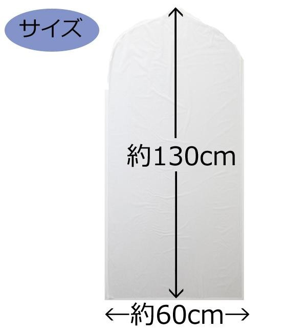 背面には通気性の良い不織布、表面には中身が一目で確認できる透明フィルムを使用。ワンピースやコートなどの収納に便利です。