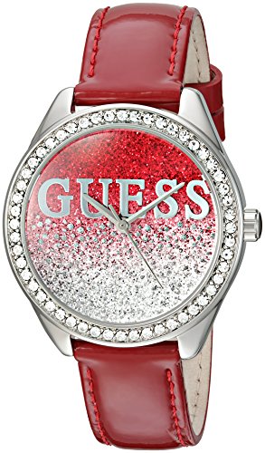 -. Binding : Watch -. Brand : GUESS -. Color : Silver/Red -. Department : womens -. EAN : 0091661470271 -. Feature : Highlighted in a bold pairing of Silver-tone and Red, sparkle and glitter add the perfect touch of glamour for a truly dramatic statement / Unleash your inner fashionista with this watch's crystal-accented bezel and red leather strap / Quartz Movement / Case Diameter: 36mm / Water resistant to 10m (33ft): in general, withstands splashes and rain, but not immersion -. Label : Sequel International -. Manufacturer : Sequel International -. Model : U0823L3 -. MPN : U0823L3 -. PartNumber : U0823L3 -. ProductGroup : Watch -. ProductTypeName : WATCH -. Publisher : Sequel International -. Studio : Sequel International -. Title : GUESS Women's U0823L3 Trendy Silver-Tone Watch with Red Dial , Crystal-Accented Bezel and Genuine Leather Strap Buckle -. UPC : 091661470271