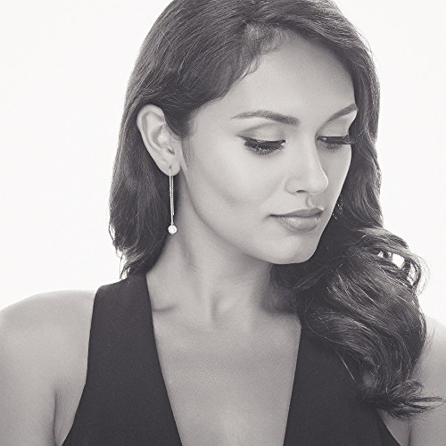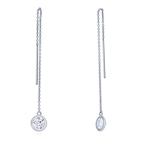 These threader earrings perfectly tailor your outfit to any occasion. Vary the length by adjusting the chains, and watch the charm catch light. Made of rhodium plated fine 925 sterling silver. Set with 1.68 carat round cut clear cubic zirconia (6mm) in bezel setting. Earrings measure 3 inch in length, 0.3 inch in width. Pull through. Imported.