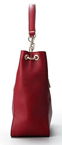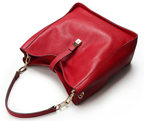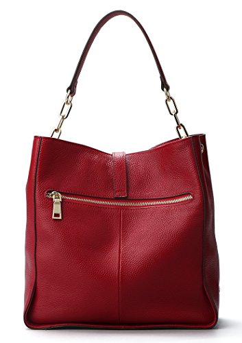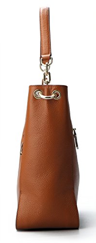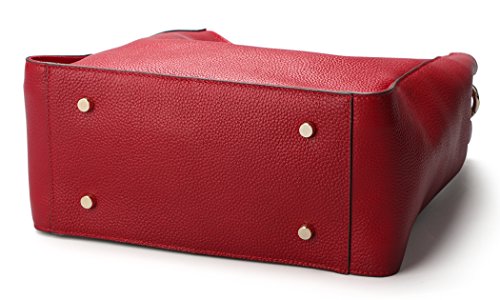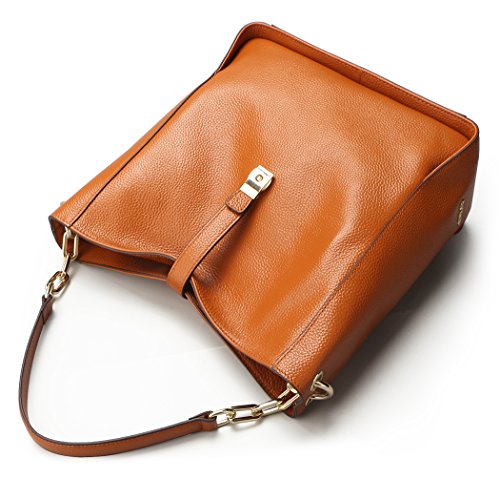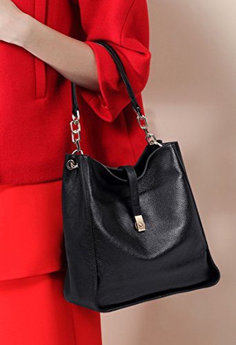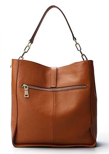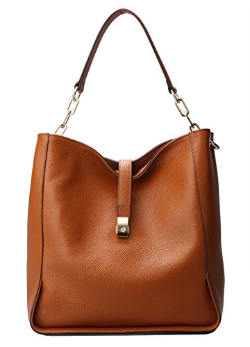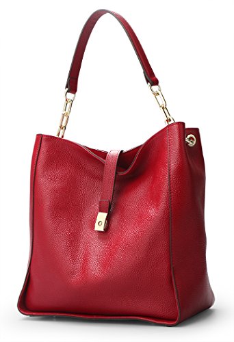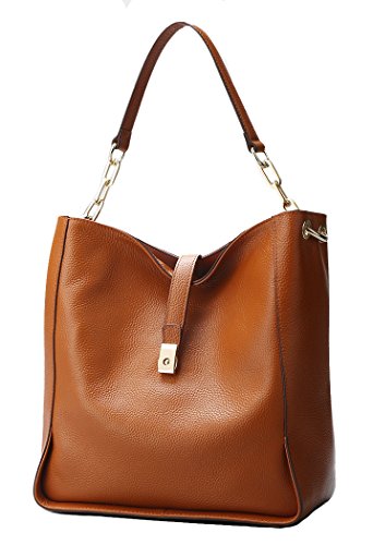 [Description] [High Quality Material] We use the high quality leather for this handbags_ cowhide is made of full grain leather. Come with light gold custom antioxygenic hardware and durable polyester lining. These make the leather handbags more luxury. The lining is durable and smooth. Generous and elegant. [Handbags Design] Tote and bucket bag design_ closure by top zipper or personalized custom metal hardware lock with strap. Features shoulder strap design_ come with adjustable and removable long shoulder strap. This leather handbags contains 1 big inner compartment_ 1 cell phone pocket_ 1 interior zipper pocket. Large capacity designed_ comfortably holds an iPad_ iPhone6s Plus_ wallet_ cosmetic_ and other daily things_ perfect to use as daily handbags for working_ shopping_ or dating. [Delicate And Practical] Hand made by professional artisans. The handbag appearance concise and atmosphere_ powerful at the same time_ inside of the zipper pocket_ can put coin_ cell phone_ etc. Fully lined interior includes inside pocket_ detail stitching matches the bag color. Made of soft leather_ and handmade. [Suitable] The most popular color_ soft leather_ clear fashion texture_ with simple styling_ no matter for girls_ womens or office lady_ it is a good choice. You can use it as a leather handbags_ shoulder bags_ top-handle bag or tote purse. Excellent bag for any occasion like leisure_ business_ school_ party_ shopping_ traveling_ etc. Perfect gift choice. [Dimensions] (L)11`` x (W)4.33``x (H)10.24`` inch_ with approximately 8.66 inch high handle and 49.2 inch length removable shoulder strap