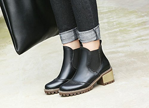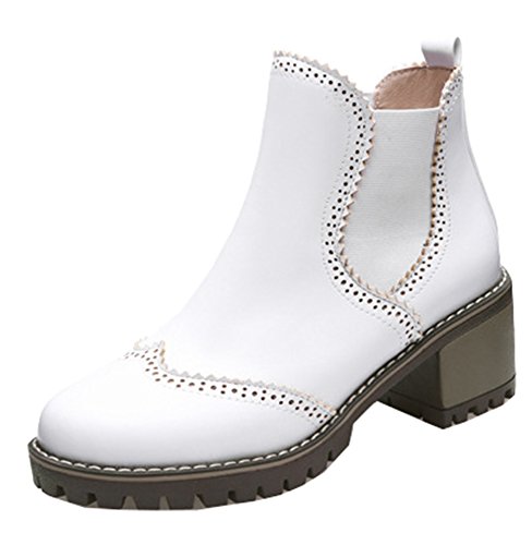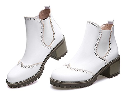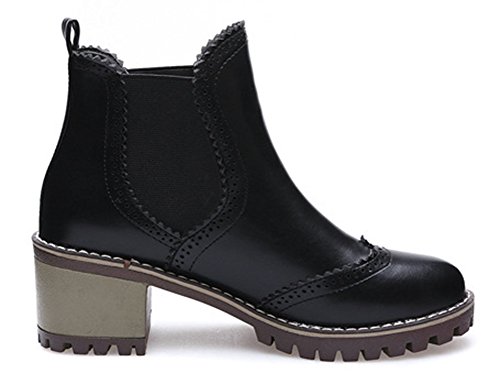 Binding : Apparel Product Description This pair of shoes is for women, girls, juniors and young ladies. You will look chic and stylish when wearing them. The heels measure 2.4 inches. You will feel comfy in their block mid heels. This pair of shoes features ankle high and solid upper. You will look sweet in their round toe design. Its chic perforated design will offer you an extravagant simplicity. It's convenient for you to wear in their elastic closure design. The sole is made of good rubber. You will feel comfortable in their soft bottom. You can wear them to the office, school and shopping mall. They are of high quality and durable. We promise we will provide our customer with the best quality and lowest price. Your pleasant shopping experience is our eternal pursuit. Waiting for your coming! 0