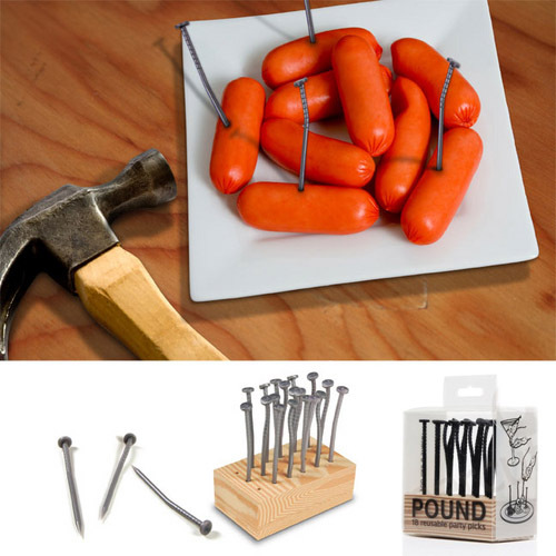 Ha ha? I fooled you again. These are inserted in the food stuff is not nails Oh? they aresafe to eat made "nail" fruit fork. Use the "nail" fruit fork holiday party? will give visitorsa pleasant surprise.