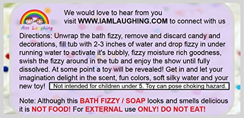 -. LegalDisclaimer : Ingredients: Bath Fizzy: food grade sodium bicarbonate, food grade citric acid, organic coconut oil, organic olive oil, witch hazel, essential oils, fragrance oils, FD&C blue 1 (E133) Sugar Scrub Frosting: sugar, meringue (corn starch, egg whites, sugar, gum arabic, calcium sulfate, citric acid, cream of tartar, artificial flavors, silicon dioxide), organic olive oil, cocoa butter, sodium lauryl sulfocaete, candy decorations Caution--Use only as directed. Excessive use of prolonged exposure may cause irritation to skin and urinary tract. Discontinue use if rash, redness or itching occurs. Consult your physician if irritation persists. Keep out of reach of children except under adult supervision. Manufactured by I am laughing in Bakersfield, CA 93313