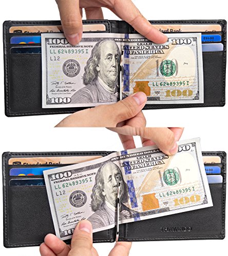 Fed up with the old over-sized wallet, that bulges out your back pocket? With our Slim?Wallet you can hold up to 12 credit cards and bills while slimimg down your pocket! You can use the cardholder?not only to hold credit cards, but also to clip bills inside. Our slim wallet was designed to fit perfectly in your pocket. What you can do with the Travando® Slim Wallet: - Hold up to 12 credit, debit and other cards