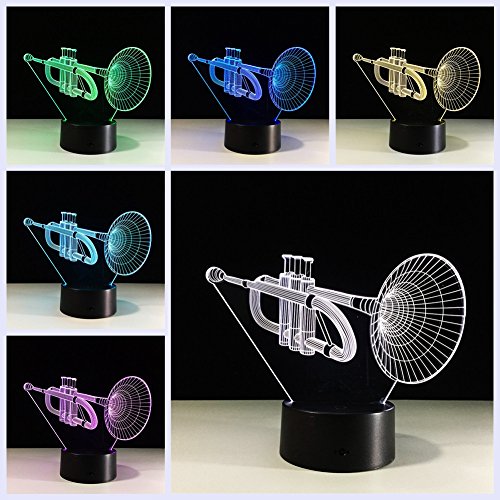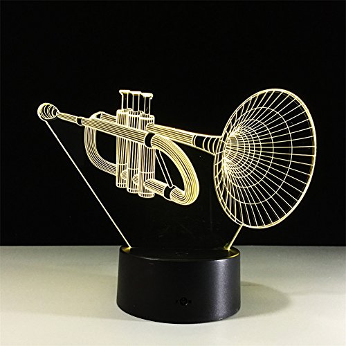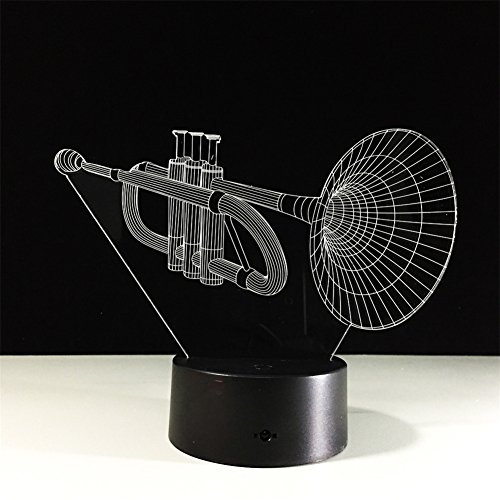 -. Title : TRADE 3D Visual Effect Unique Acrylic Panel Creativ Sculpture Musical Instrument Trumpet Colorful Changing USB Cable or Batteries Powered Home Lighting Atmosphere Desk Lamp