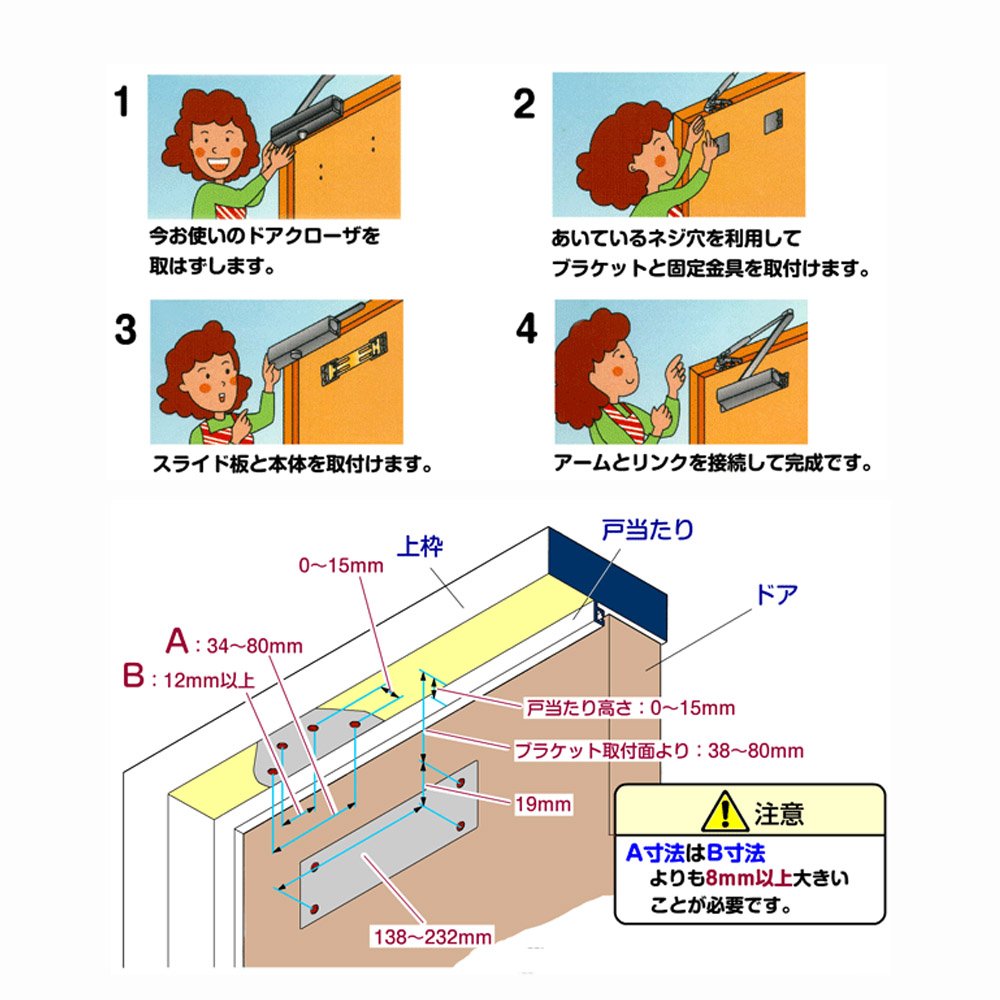 Since this product is exclusively for parallel type, it can not be used for replacing the standard type door closer.