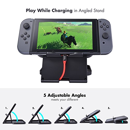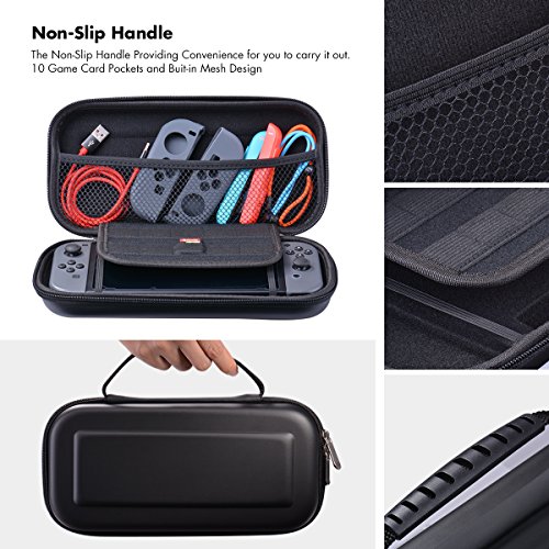 -. Feature : The Most Professional Accessories Set : Stylish and Durable Carrying Case + Tempered Glass Screen Protector + Adjustable angles Stand + Transparent Hard Back Cover + Fast Charging Cable + Ultra Slim Base Cover + Game Card Storage Box / Perfect Carry Case: Durable hard shell case protects Nintendo Switch from drops, Snug fit ensures your Switch does not bounce around inside. Two soft flaps protects the screen from being scratched inside the case. / Adjustable Angles Stand: Light weight and Folds up design for portability, ANti-Slip Silicone Strip , Specifically designed for Nintendo Switch. / About Hard Cover: Made to perfectly fit your Nintendo Switch with precision cutouts for all buttons and ports, The hard clear cover is devided by three parts, a button is incorporated onto the hard case for easier pop on and off the Joy-Con from console. Perfectly structure is very simple to assemblely and disassembly. / Seven Pcs Nintendo Switch Accessories Set: These Basic accessories let you enjoy your playtime, enjoy your Nintendo Switch.