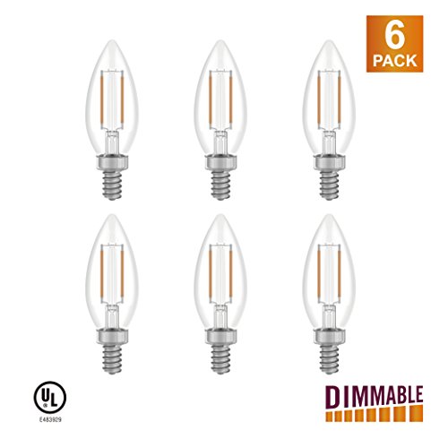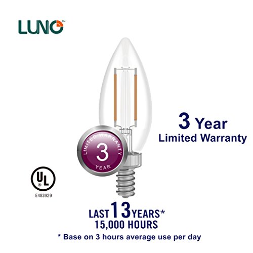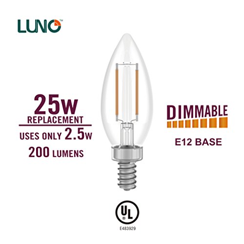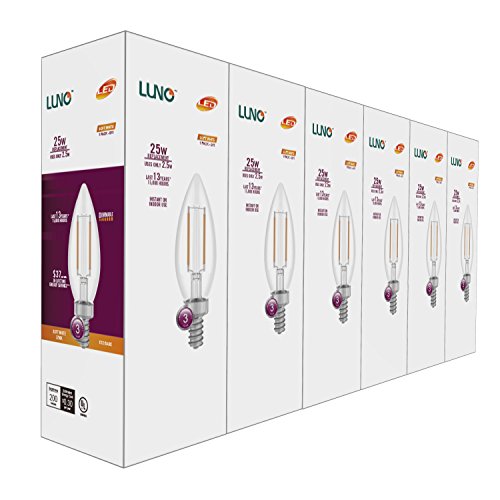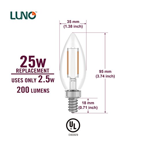 LUNO B11 Dimmable Filament LED Bulb, 2.5W (25W Equivalent), 200 Lumens, 2700K (Soft White), Small Base (E12), UL Certified (6-Pack)