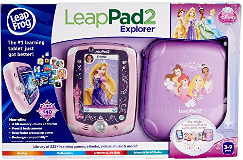 -. Feature : This Disney Princess bundle features: a custom-decorated Disney Princess filigree LeapPad2 tablet, protective Disney Princess carrying case, 7 exclusive Disney Princess wallpapers, 2 Disney Princess sticker sheets and 5 included apps / The number 1 learning tablet just got better! LeapPad2 inspires kids to imagine & explore with a faster processor and 4GB for limitless learning fun! / Play along with the Pet Writing, Cartoon Creativity and Art Studio apps, LeapFrog Learning Songs and more / Draws from more than 2500 skills in subjects like reading, art, music, language and culture, science, geography, mathematics, health and more. / Appropriate for children ages 3 to 9 years. Requires 4 AA batteries (not included).