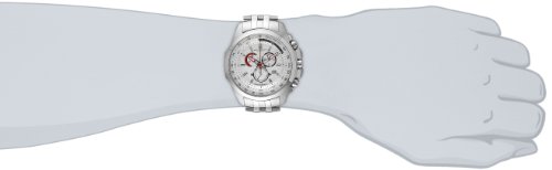-. Feature : Chronograph features include 60 second, 30 minute timer, and day sub dials / Date displayed at the 4 o'clock position / Silver-tone, stainless steel, bracelet and case with a White dial / Swiss Quartz Chronograph movement / Water-resistant to 100 M (330 feet) / Chronograph features include 60 second, 30 minute timer, and day sub dials / Date displayed at the 4 o'clock position / Silver-tone, stainless steel, bracelet and case with a White dial / Swiss Quartz Chronograph movement / Water resistant to 330 feet (100 M): suitable for snorkeling, as well as swimming, but not diving