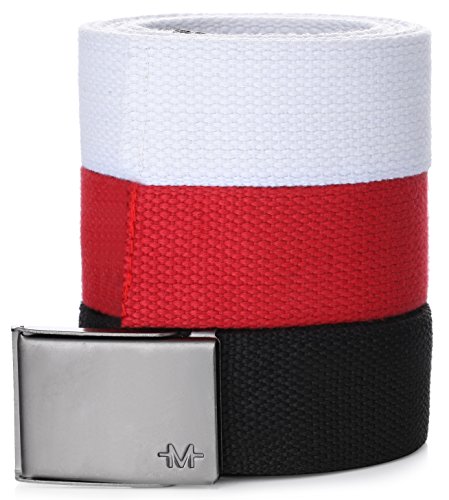 Marino has created this beautiful set of 3 differently colored belt canvas straps along with one canvas web belt buckle to interchangeably use with all 3 straps. The unique belt buckle for canvas belt contains a beer bottle opener at its rear, for party time. Give yourself the gift you deserve that will enhance your day. Let the Marino men's web tactical belt take you places!