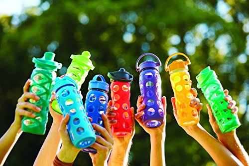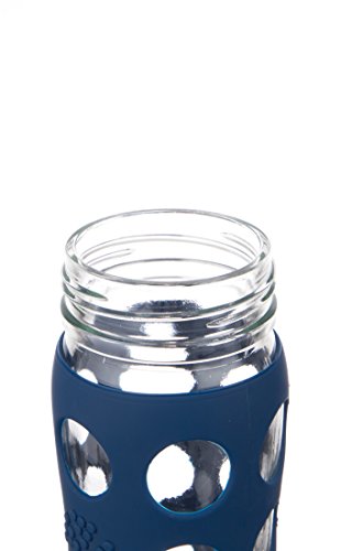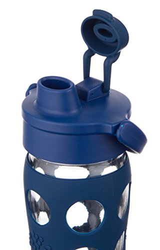 Lifefactory 16-Ounce BPA-Free Glass Water Bottle with Flip Cap & Silicone Sleeve, Midnight Blue