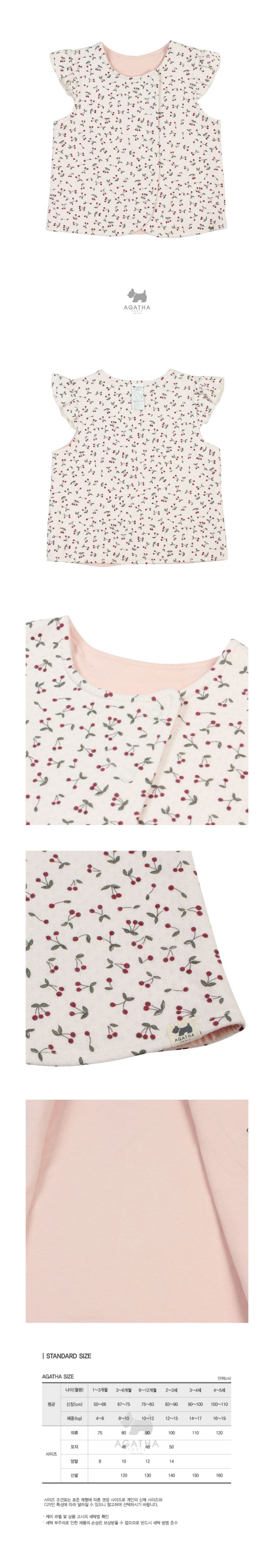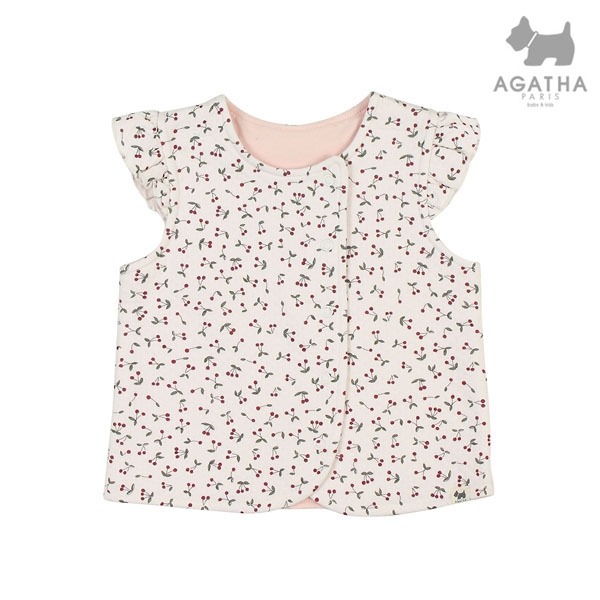 러블리한 체리 프린트의 삼중지 소재를 사용하여 보온성이 좋은 여아 수면 조끼.