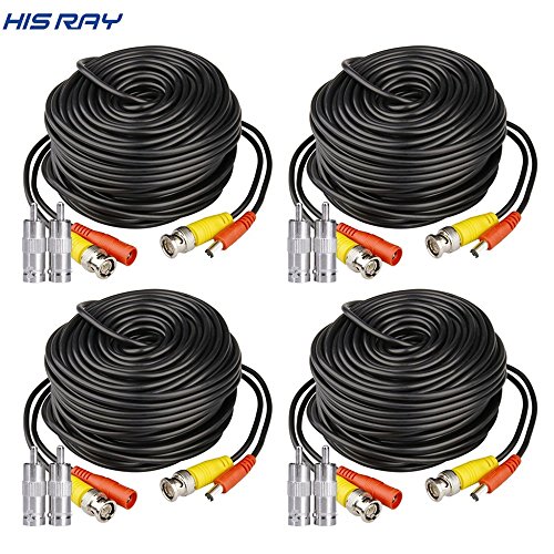 HISRAY 4 Pack 100ft BNC Video Power Cable Security Camera Wire Cord Extension Cable with 8pcs BNC to RCA Connectors for CCTV DVR Surveillance System