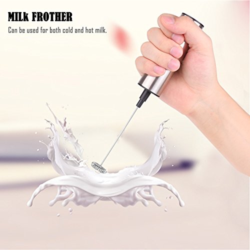 - High Quality Milk Frother: The frother head and handle are made of high quality 304 stainless steel, bold spring, powerful motor up to 1200RPM, which creates smooth and delicate whipped cream as you wanted. Foams all kinds of milk, cappuccinos, lattes, espressos, or hot chocolate in seconds. Can be used for both cold and hot milk.