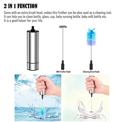 - 2 in 1 function: With an extra brush head, this frother can be used as a cleaning tool. It can help you to clean bottle, glass, cup, baby nursing bottle, baby milk bottle etc.