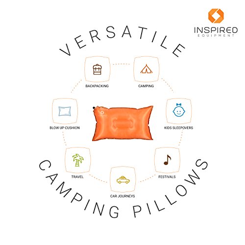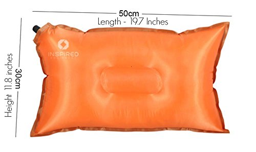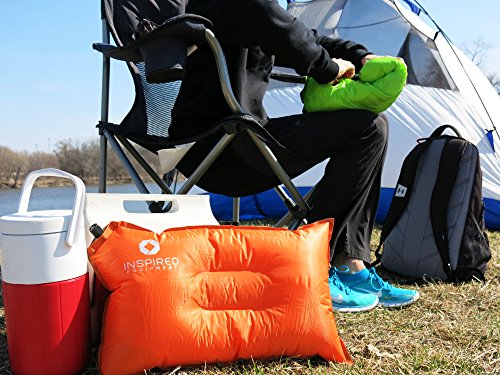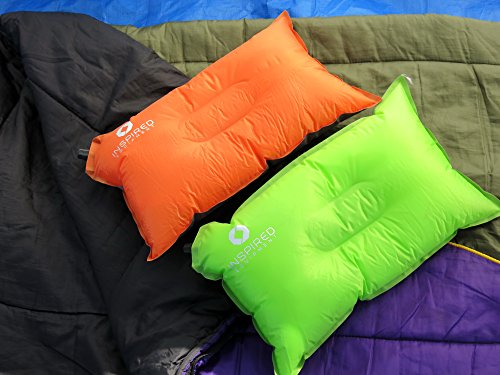 - Feature : ✔ TRAVEL LIGHT AND SLEEP WELL - NOW YOU CAN HAVE THE BEST OF BOTH WORLDS! No need to lug around oversized baggage just to accommodate your camping pillows. Light and small enough to throw in a backpack or carry on - weighs less than 10oz when packed away. / ✔ NEVER WAKE UP WITH A STIFF NECK WHEN CAMPING AGAIN! Large enough to sleep comfortably on - measures 11.8 inch *19.6 when inflated. The smooth memory-foam-style filling and non-slip base ensure a great night's sleep. Self inflates about half way for ideal support and comfort. Easy to inflate or deflate to YOUR perfect level of inflation - air nozzle gives you full control over the loft and firmness of the pillow. A much better solution than sleeping on smelly, rolled up clothes! / ✔ HIGH QUALITY WORKMANSHIP MEANS THIS PILLOW IS BUILT TO LAST Inspired Camping Pillows are made from high quality and durable 190 thread polyester with a non slip base and textured cover, which simply wipes clean with soap and water making it a hygienic and practical choice for use outdoors. Many of our reviewers have noted that our pillow has held up perfectly even after being sat on by pets and toddlers! / ✔ VERSATILE & SO EASY TO USE: No matter where or when you need to take a nap - a tent, rv, trailer, beach or plane, this pillow's got your back. And your neck! The self inflating feature also means it's easy for kids to blow up without help. Available in two vibrant colors - adventure loving Orange and nature loving Green. A must have addition to your camping supplies or survival gear. / ✔ ORDER NOW WITH TOTAL PEACE OF MIND due to our "sleep well" guarantee. See below for full details.