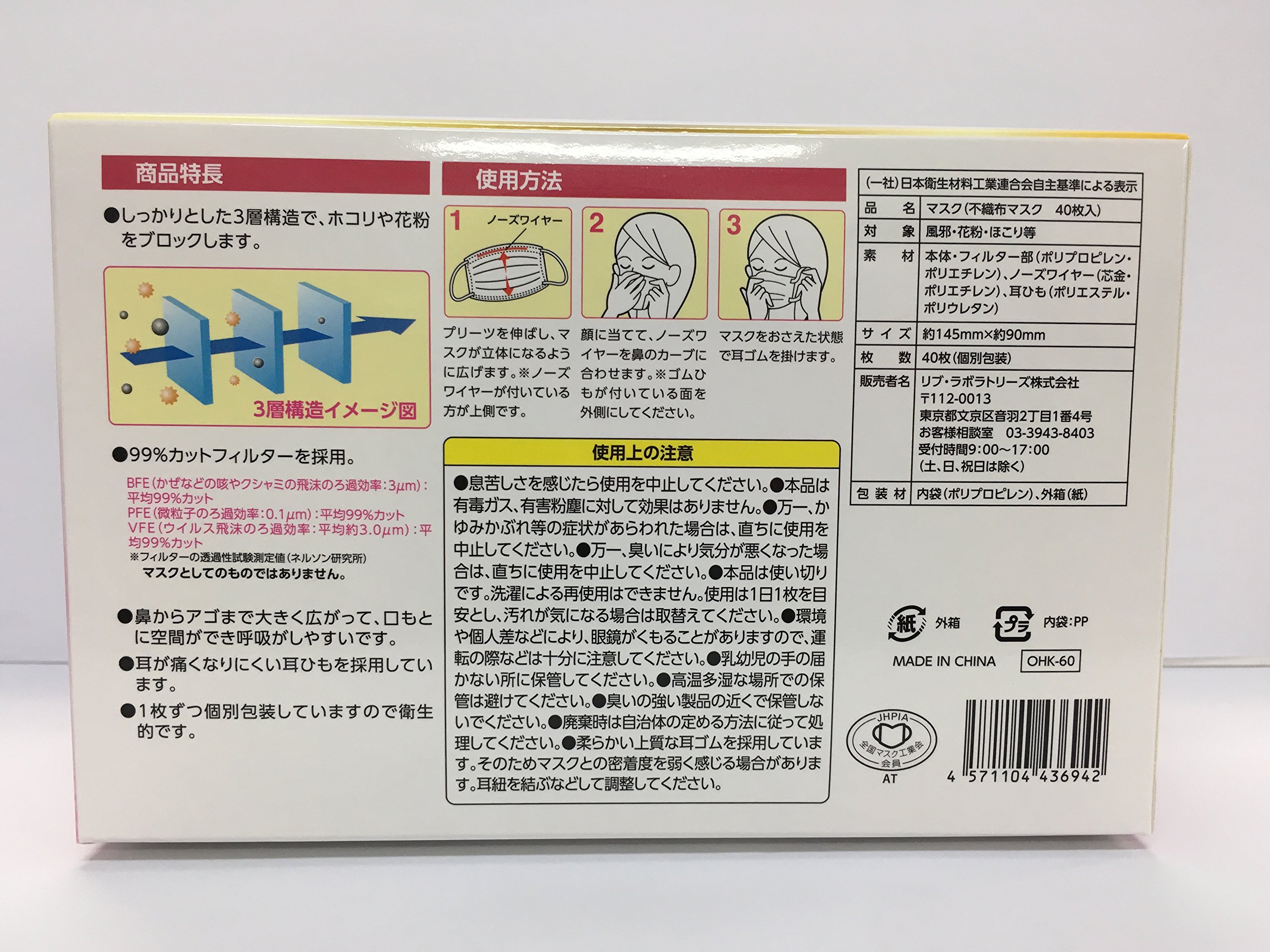 ● With a solid 3-layer structure, it blocks dust and pollen.