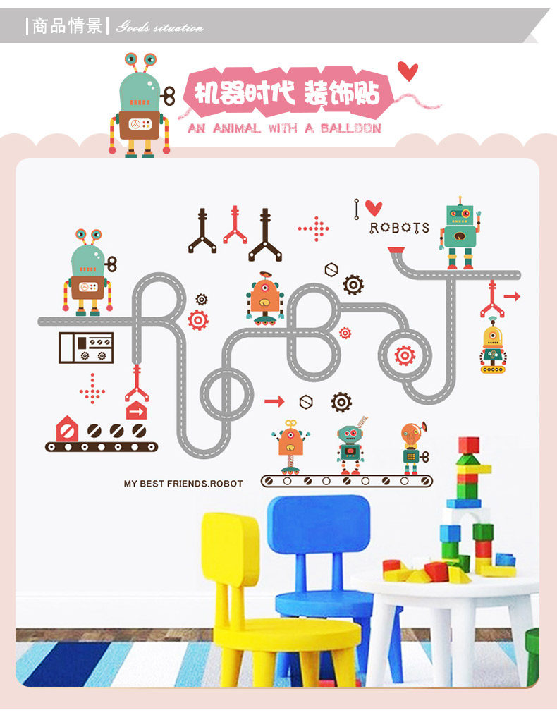 机器人墙贴幼儿装饰贴纸创意儿童房装饰贴纸沙发电视机背景墙贴