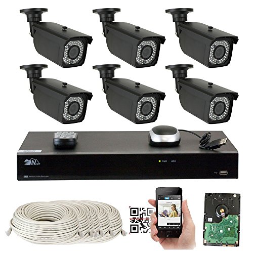 *****New Technology***** The latest H.265 video compression! 8 Channel H.265 Max 4K/8MP NVR with (6) H.265 4MP 1520P 2.8~12mm Manual Zoom Varifocal Lens Weatherproof PoE IP Cameras