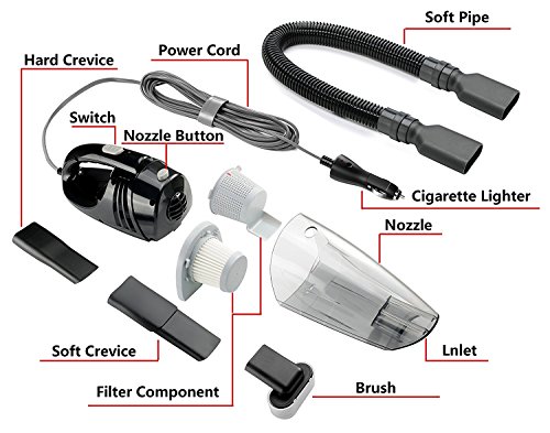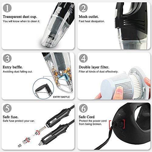 Safe Car Vac: LOLLDEAL auto vacuum has passed CE and ROHS certification, LOLLDEAL auto lightweight dust buster installs 10A current fuse to avoid the damage of power supply.