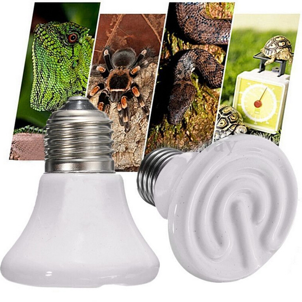 This black ceramic heat emitter bulb is the perfect 24 hour heat source for all reptiles. These porcelain heating devices screw into a standard porcelain incandescent socket, giving off intense muscle-penetrating infrared heat while emitting no light. The flat-faced design is more efficient and longer lasting than conical designs which build up excess heat internally ultimately carbonizing the element.