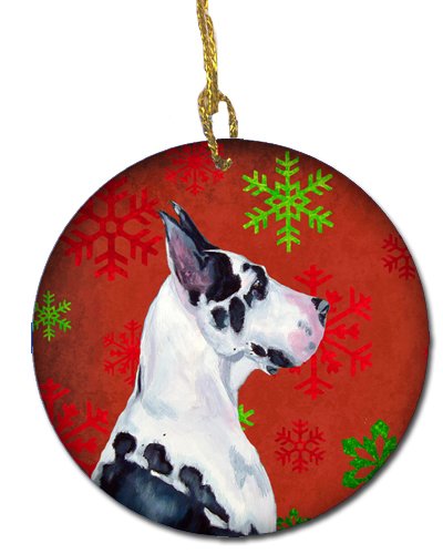 Caroline's Treasures LH9326-CO1 Great Dane Red Snowflake Holiday Christmas Ceramic Ornament, Multicolor