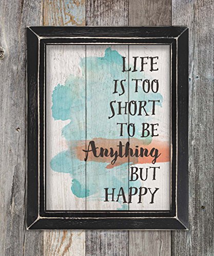 Life is too Short Be Happy Watercolor 21 x 18 Wood Framed Pallet Wall Art Sign Plaque