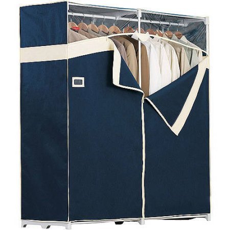 -. Binding : Kitchen -. Brand : Rubbermaid -. Color : White , Blue -. EAN : 0789185526207 -. Feature : Breathable fabric cover to help prevent mildewing and accumulated moisture Perfect for seasonal clothing storage, such as ski jackets and summer dresses / Clear window allows clear visibility of contents Good for travelers Perfect for those who need additional closet space / Garment storage closet works well for both short and long-term storage / Rubbermaid garment closet zips in the middle front Has an area for hanging clothes / Measures 63"H x 60"W x 19"D Helps de-clutter your space and keeps your stuff out of sight -. IsAutographed : 0 -. Label : *Rubbermaid* -. Manufacturer : *Rubbermaid* -. Model : 1807509 -. MPN : 1807509 -. PartNumber : 1807509 -. ProductGroup : Home -. ProductTypeName : HOME -. Publisher : *Rubbermaid* -. Size : 19.00 x 60.00 x 63.25 Inches -. Studio : *Rubbermaid* -. Title : Rubbermaid 60" Garment Closet -. UPC : 789185526207
