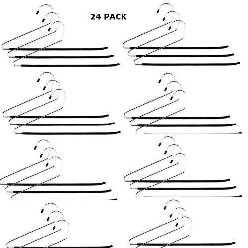 -. Binding : Kitchen -. Brand : LavoHome -. Color : Stainless Steel -. EAN : 0639725473358 -. Feature : Non Slip pack of 24 Slack hangers / Open Ended Design for easy access and storage of clothes / Made of chrome plated metal with sure-grip coating. / Made to fit all standard closet rails / Made by Unique Imports. -. IsAutographed : 0 -. Label : LavoHome -. Manufacturer : LavoHome -. PackageQuantity : 24 -. ProductGroup : Home -. ProductTypeName : HOME -. Publisher : LavoHome -. Studio : LavoHome -. Title : 24 Pack Open Ended Pants Slack Closet Organizer Closet Hangers- Fights Creases! -. UPC : 639725473358