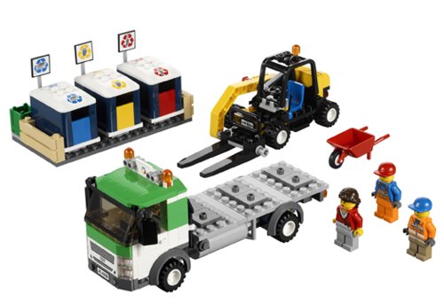 -. Feature : 3 Minifiguren: 2 Arbeiter und eine weibliche Minifigur / Recycling-Truck und Gabelstapler / Recycling-Truck mit 3 abnehmbaren Containern in verschiedenen Farben / Gabelstapler mit Hubgabel / Ebenfalls enthalten: Schaufel und Besen / Der Recycling-Truck ist 17 cm lang. / Der Gabelstapler ist 9 cm lang