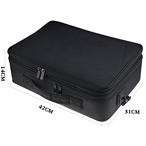 Size: 16.5L * 11.4W*5.5H (29*14*40 cm) ; Weight : 1.6kg . Our makeup case is the Largest among the same version .
