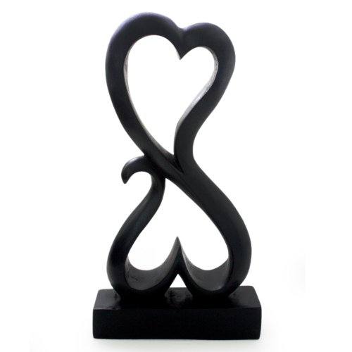 NOVICA Large Black Romantic Suar Wood Sculpture, 12" Tall 'Love Unites'