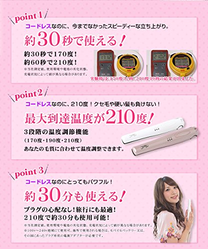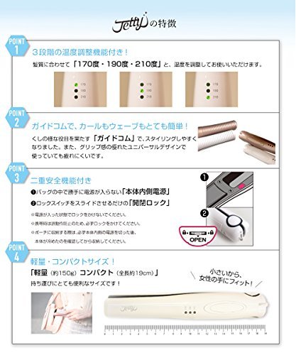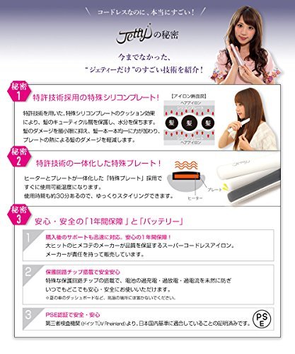 ●특허 기술 채용 감동! ! 무선고데기「JETTY」●설정 온도 보상 선언! 약30초에 170℃고, 약60초에 210℃ 유선으로도 나은 속도로 설정 온도로 도달!●특허 기술을 채용한 실리콘 플레이트는 머리의 데미지를 줄일 수 있습니다.●콤팩트에 무선 이기 때문에,가방 중에(속에) 포 이《도》수납 악?! 외출처나 해외에서 대활약!