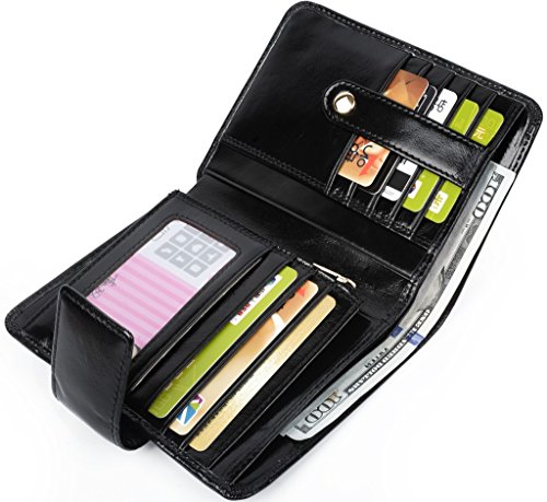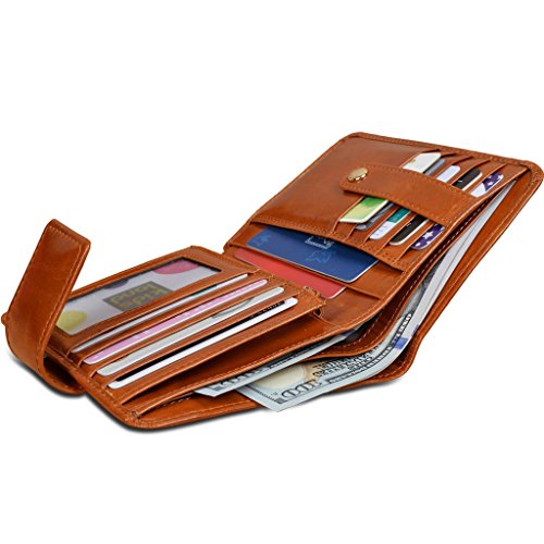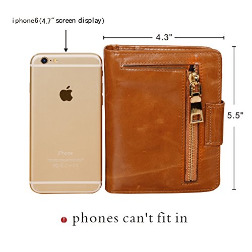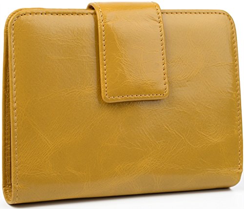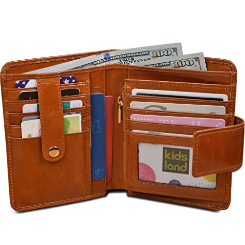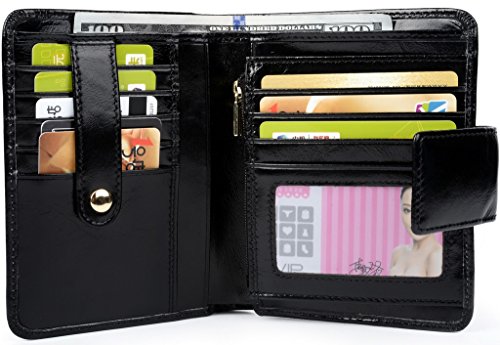 -. Binding : Apparel -. Brand : YALUXE -. Department : womens -. Feature : Top Grain Leather with waxing and oiling finish,luxury looking and feel. / Shiny gold-color hardware,heavy duty zipper and detailed contrast stitching brightens up the wallet. / Contains 11 card slots including a clear plastic photo slot,one compartment for cash and a back zipped pocket for coins. / The small bifold with snap design is easy and safe to use and carry. / Dimensions: 5.5" x 4.3" x 0.8" -. ProductGroup : Apparel -. ProductTypeName : ACCESSORY -. Title : YALUXE Women's Small Genuine Leather Bi-Fold Wallet Card Holder Coin Pocket