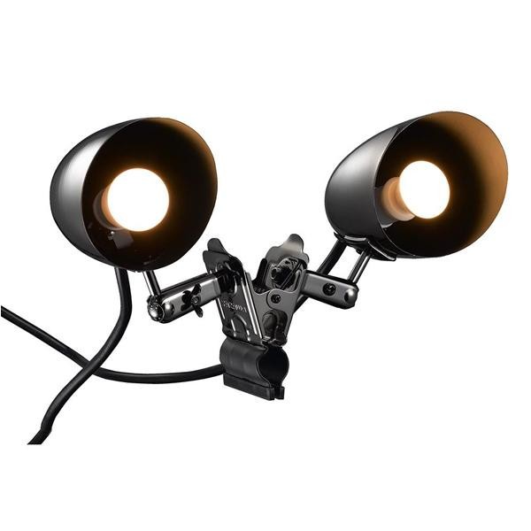 | 仕様 | 口金:E17 灯数:2灯 使用電球:ミニレフランプ(40W) 定格消費電力:40Wまで×2 防水性能:防沫型(IPX4相当) クリップくわえ幅:平行時約30mm コード長:約1.5m |
