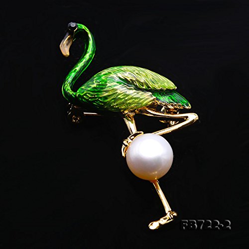 -. Feature : High quality pearl brooch with beautiful flamingo design. / The mainstone is a 9mm round freshwater pearl,with good skin and high lustre. / Brooches are often worn on a jacket or blouse with the purpose of dressing up an outfit. By using brooches on a little black dress, the outfit becomes dressy and stylish, even if it is placed at the "V" of the neckline or at the waist. / It is also very popular to wear a brooch at the top of a buttoned blouse. Brooches are added to hair, hats, purses, gloves and scarves to make these accessories more fashionable. / Pearl customization is available. Any question or request on our pearls quality, size, setting, metal type, please feel free to contact us, we are always here to help you.