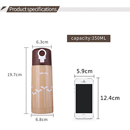 UPSTYLE Tree Pattern Vacuum Insulated Stainless Steel Thermos Travel Insulated Tumblers Sport Water Bottle Size 12 oz ( 350 ml ), Yellow