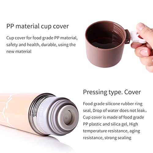 - The top has push lid, perfect for pouring out hot liquid and the cover used silica gel seal ring, security leak proof seal.