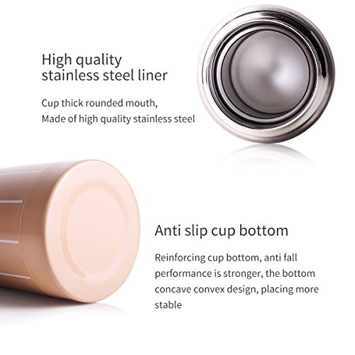 - The stainless steel interior and exterior is durable and withstands the demands of daily use. The double wall design allows this bottle heat preservation. This bottle's shape is easy to grip and hold. The base of the bottle is non-slip and scratch resistant.This unique stainless steel paired with vacuum insulation will keep your drink hot or cold more longer. It is safe and no heavy metal. It will never rust or leave a bad metal taste in your mouth.