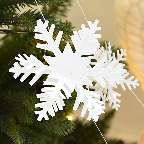 Tinksky 12pcs 3D Snowflake Decorations Silver White Snowflake Cardboard String Christmas Hanging Decorations Wedding Luau Hawaii children's party Decoration