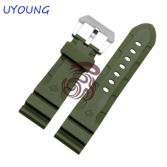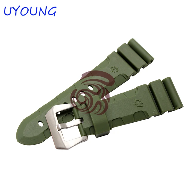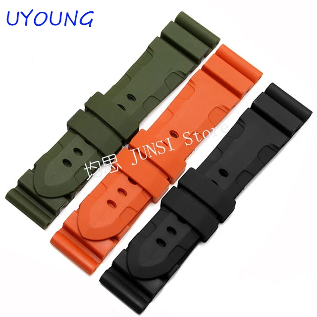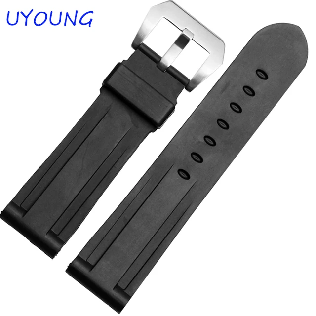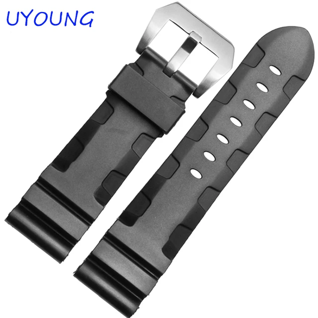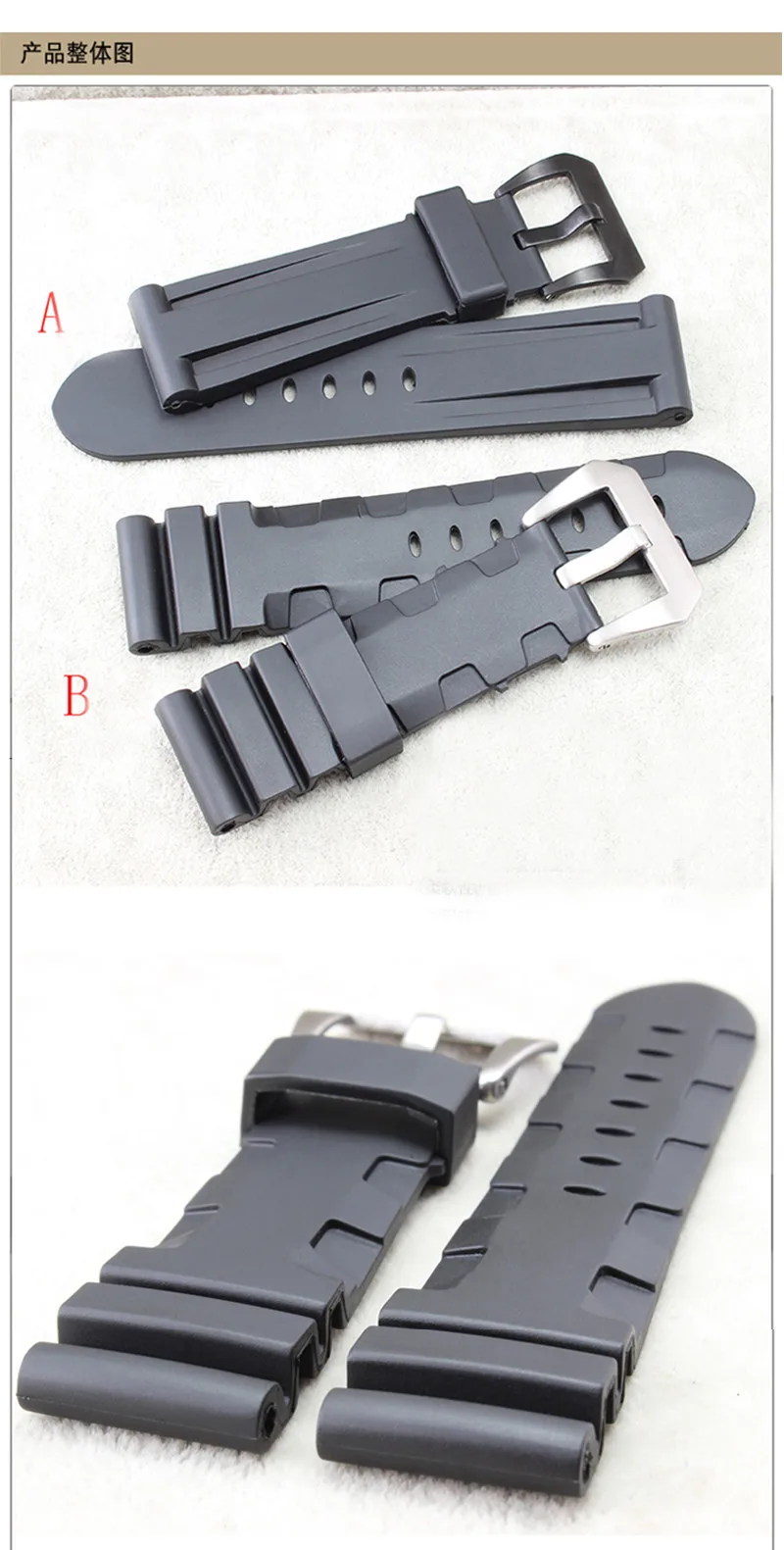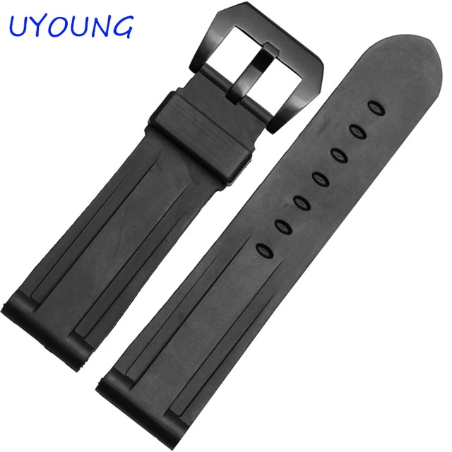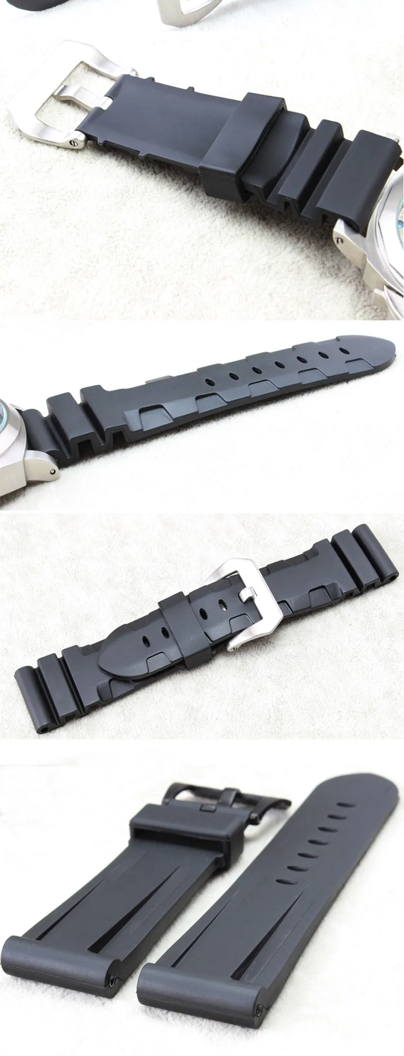 24 미리메터 새로운 남성 시계 밴드 블랙 다이버 구부러진 엔드 실리콘 고무 스트랩 및 배포 버클 망