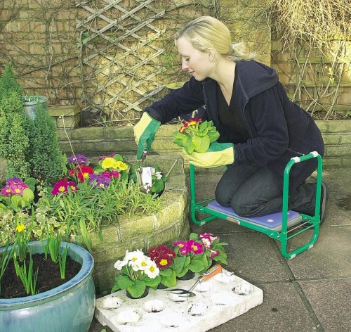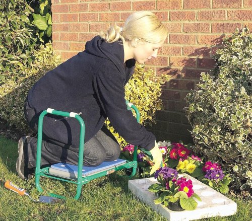 Double-sided pad acts as seat (plastic) or kneeler (foam)