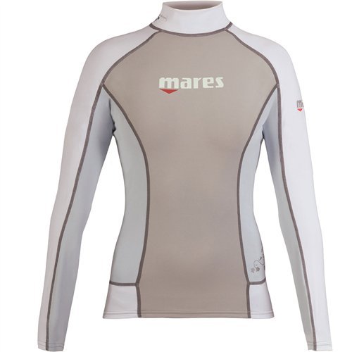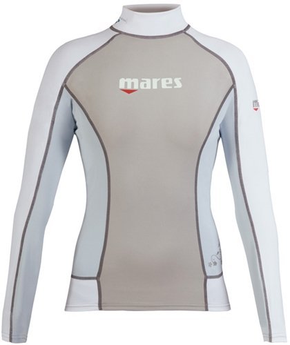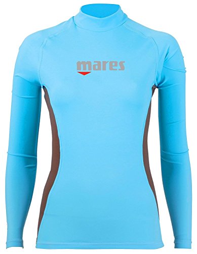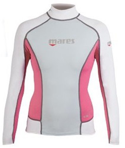 Mares Womens Rash Guard Long Sleeve She Dives Ideal as undersuit or by itself for superior UV protection FEATURES UV protection 50+ Cool lightweight material Flat seam construction for comfort COLORS: Pink or Blue Fog Characterized by the Mares Trilastic look, the rash guard is built with a material that provides UV protection of 50+. The seams, sewn with flatlock stitching, won t leave marks on your skin. Perfect to wear underneath your suit and ideal for all kinds of watersports.