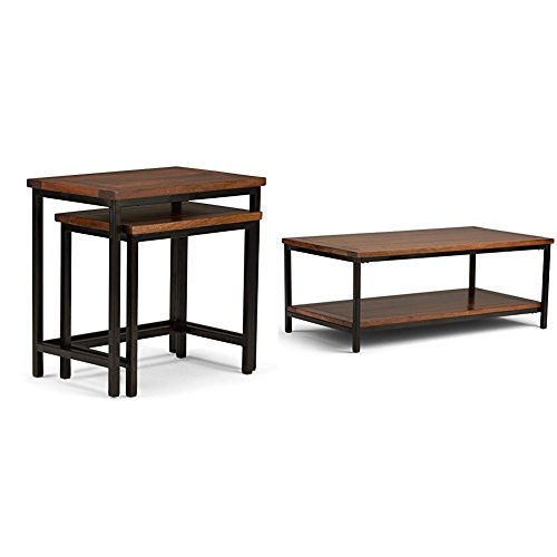 -. Title : Simpli Home Skyler 2 Piece Nesting Side Table, Dark Cognac Brown + Simpli Home Skyler Coffee Table, Dark Cognac Brown :Bundle