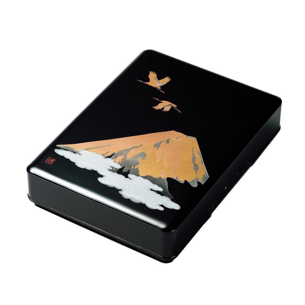 雄大な富士山と飛び立つ二羽の鶴を表現した、美しい文庫です。