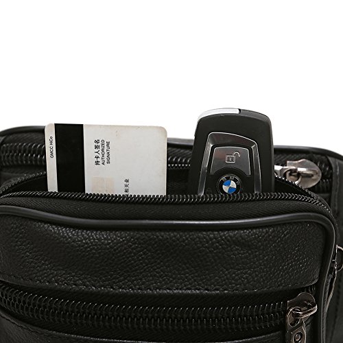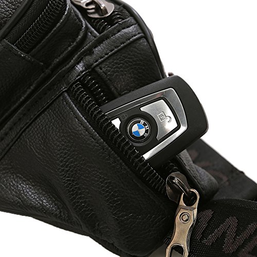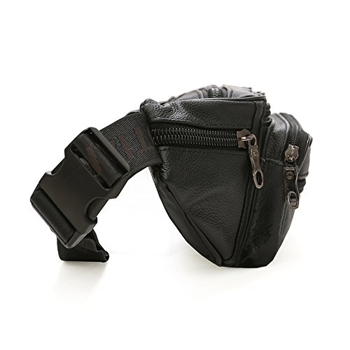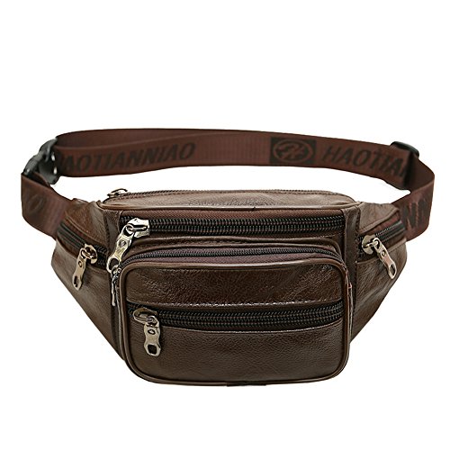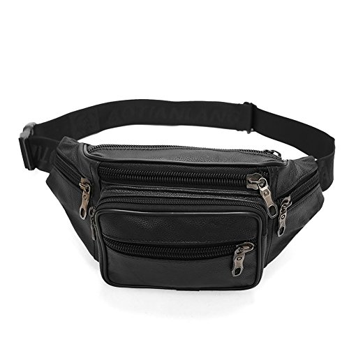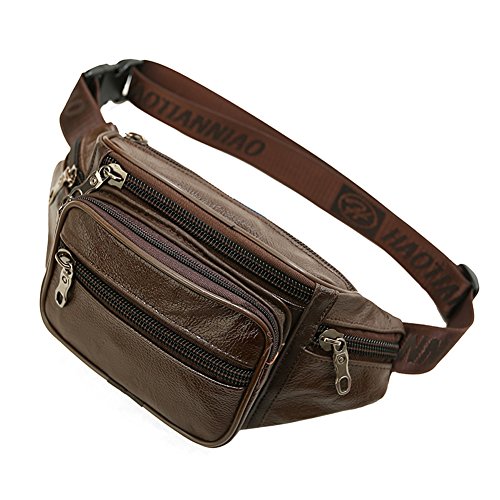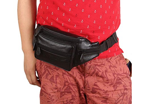 -. Feature : The leather waist pack is made of remarkably high quality top layer real cow leather,nylon lining is strong,every waist bag is exquisitely unique with its own textures,it looks very fashion / Adjustable waistband is very easy to use in sports,without the risk,the bag to fit up to a 48" waist,it is durable,practical and easily / The waist pack has 5 conveniently sized pockets to separately store different-size things like pocket tissue,keys,portable battery,cards,cellphone,and a small wallet behind the security of a zipper / You can use this leather waist pack instead of a purse,you can belted around your waist,or you can sling it over your shoulder as a shoulder bag / This waist bag can be used in traveling,hiking, trekking,camping,running