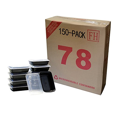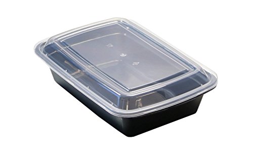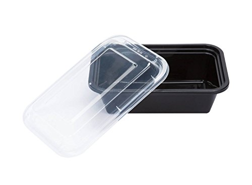 One Case 150-Pack Food & Health 38 oz Microwavable Microwave Safe Food Container Lid Bento Box, Black