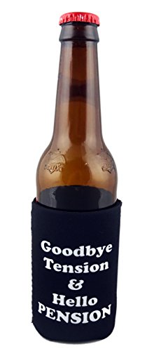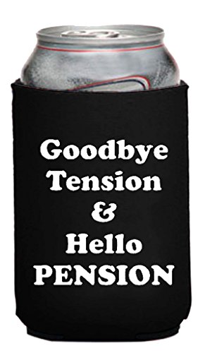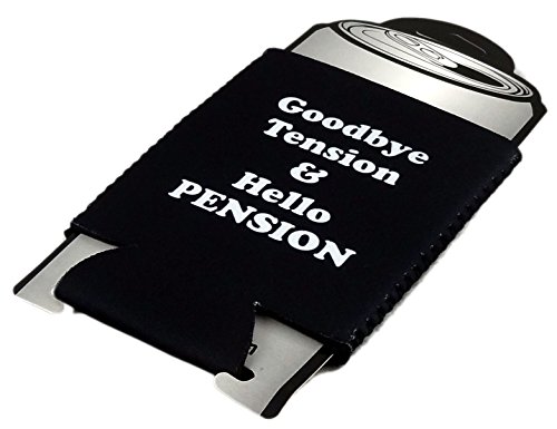Funny Guy Mugs Goodbye Tension & Hello Pension Neoprene Can Coolie, Black