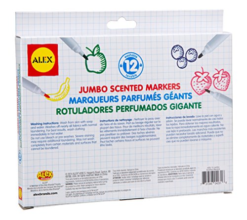 -. Binding : Toy -. Brand : ALEX Toys -. EAN : 0731346042316 -. Feature : Each color has a different fun and delicious smell / 4.25in. magic markers / Washes off with soap and water / Includes 12 scented markers / Recommended for children 3 years of age and older -. IsAdultProduct : 0 -. Label : ALEX Toys -. Manufacturer : ALEX Toys -. Model : 423J -. MPN : 423J -. PackageQuantity : 1 -. PartNumber : 423J -. ProductGroup : Toy -. ProductTypeName : TOYS_AND_GAMES -. Publisher : ALEX Toys -. Studio : ALEX Toys -. Title : ALEX Toys Artist Studio 12 Jumbo Scented Markers -. UPC : 731346042316 -. Warranty : No Warranty